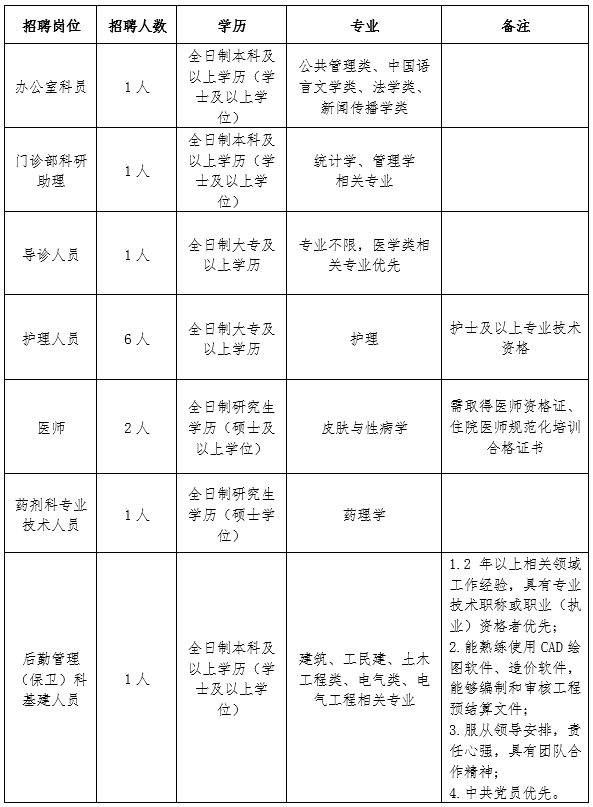 廣州市皮膚病醫(yī)院是廣州市衛(wèi)生健康委員會(huì)下屬公益二類事業(yè)單位。現(xiàn)根據(jù)工作需要,面向社會(huì)招聘編制外工作人員,具體招聘事項(xiàng)公告如下: