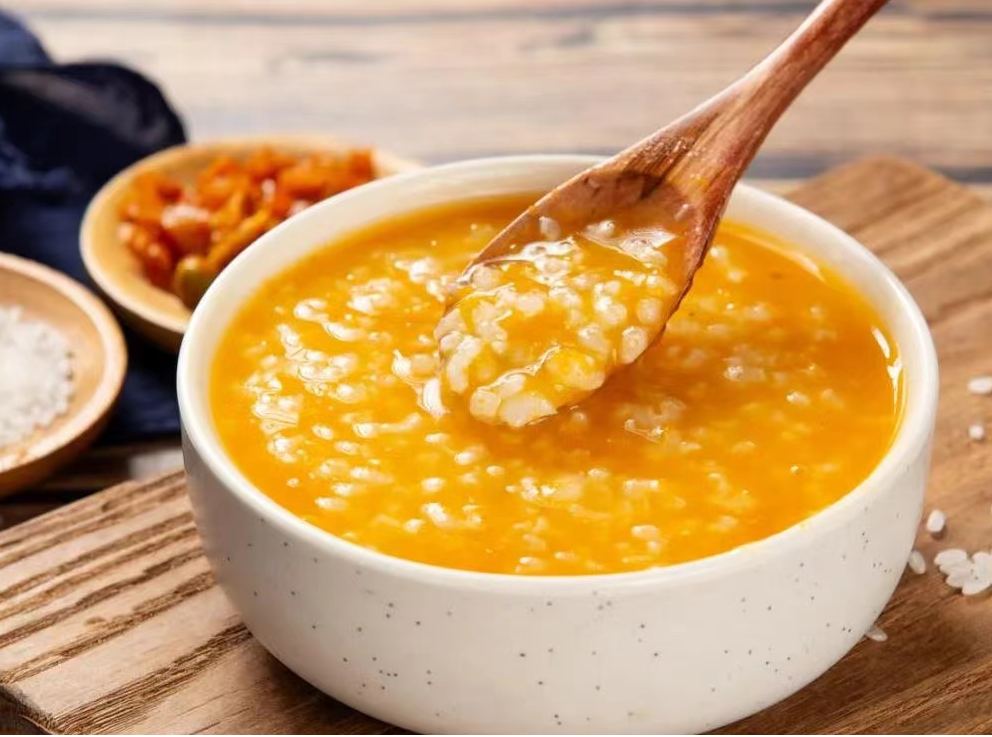 3.南瓜小米粥 材料:南瓜 200 克,小米 100 克 做法:南瓜去皮切塊,小米洗凈。將南瓜和小米放入鍋中,加水適量,煮至粥稠即可。 功效:健脾和胃,滋陰潤(rùn)燥。