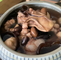 3.所有材料放入鍋中,加2.5升左右的水;大火煮開后,調(diào)最小火煮2小時(shí),起鍋前5分鐘加適量的鹽。