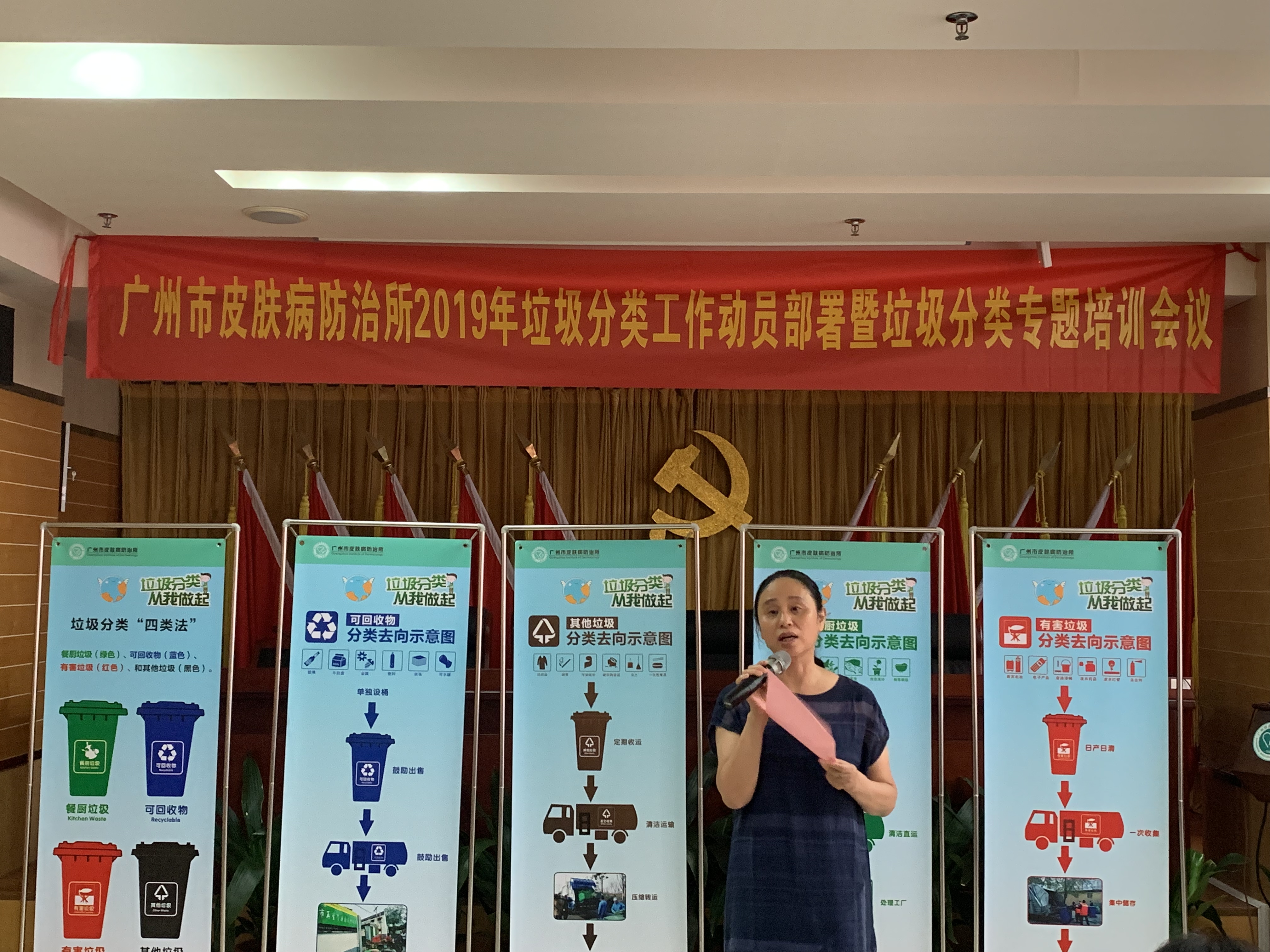 會(huì)議首先由所黨委朱慧蘭書記做部署動(dòng)員。葉興東副所長傳達(dá)了廣州市醫(yī)療衛(wèi)生機(jī)構(gòu)垃圾分類工作會(huì)議精神,接著進(jìn)行了垃圾強(qiáng)制分類專題培訓(xùn)。最后由王建琴所長總結(jié)。
