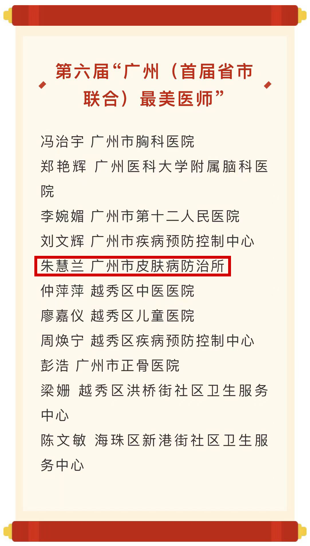 喜報 | 我所黨委書記朱慧蘭獲評“廣州最美醫(yī)師”稱號