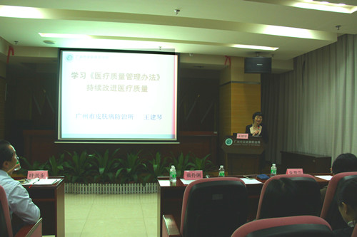 為更好地執(zhí)行醫(yī)保相關(guān)政策,規(guī)范醫(yī)療服務(wù)行為,認(rèn)真貫徹《醫(yī)療質(zhì)量管理辦法》,12月26日,廣州市皮膚病防治所在12樓會(huì)議室舉辦了“2016年廣州市醫(yī)保政策解讀暨醫(yī)療質(zhì)量管理專項(xiàng)培訓(xùn)”。廣州市醫(yī)保局天河分局審核科戴伶俐科長(zhǎng),我所王建琴所長(zhǎng)、朱慧蘭副所長(zhǎng)和葉興東副所長(zhǎng)出席了本次培訓(xùn)。培訓(xùn)由葉興東副所長(zhǎng)主持,全所中層干部和醫(yī)師共69人次參與了本次培訓(xùn)。