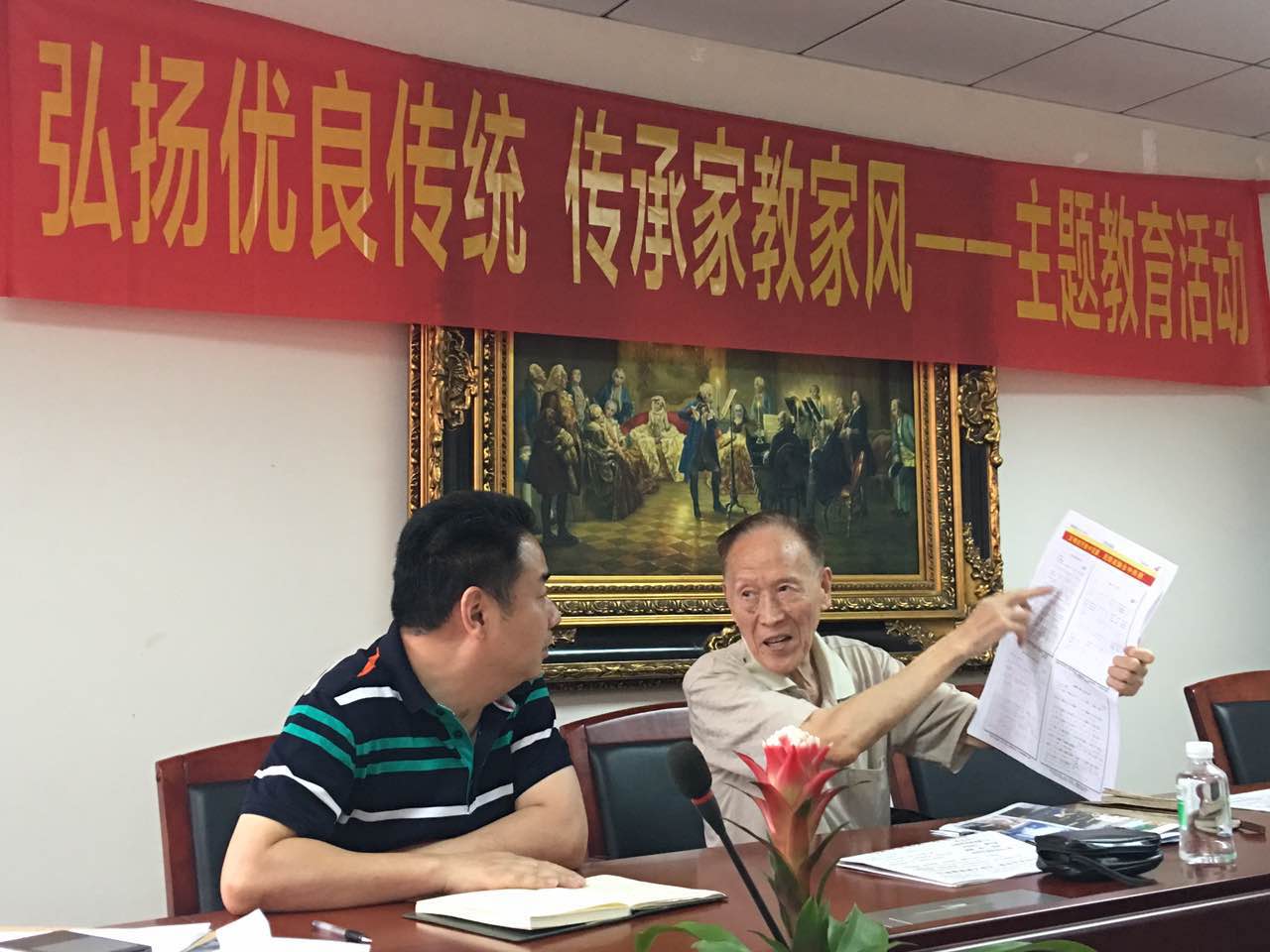 2017年5月31日,我所組織機(jī)關(guān)黨員干部約20人參加了主題教育活動(dòng);顒(dòng)邀請(qǐng)了廣東省人民政府文史館員、廣東省屈干臣檔案館館長(zhǎng)、84高齡的屈干臣作“弘揚(yáng)優(yōu)良傳統(tǒng),傳承家教家風(fēng)”的講演。活動(dòng)由我所黨委書(shū)記張錫寶同志主持。