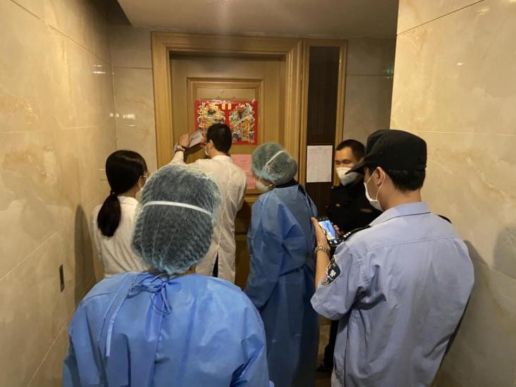 圖三、聯(lián)合社區(qū)三人小組開展境外人員隔離、流調(diào)和采樣工作