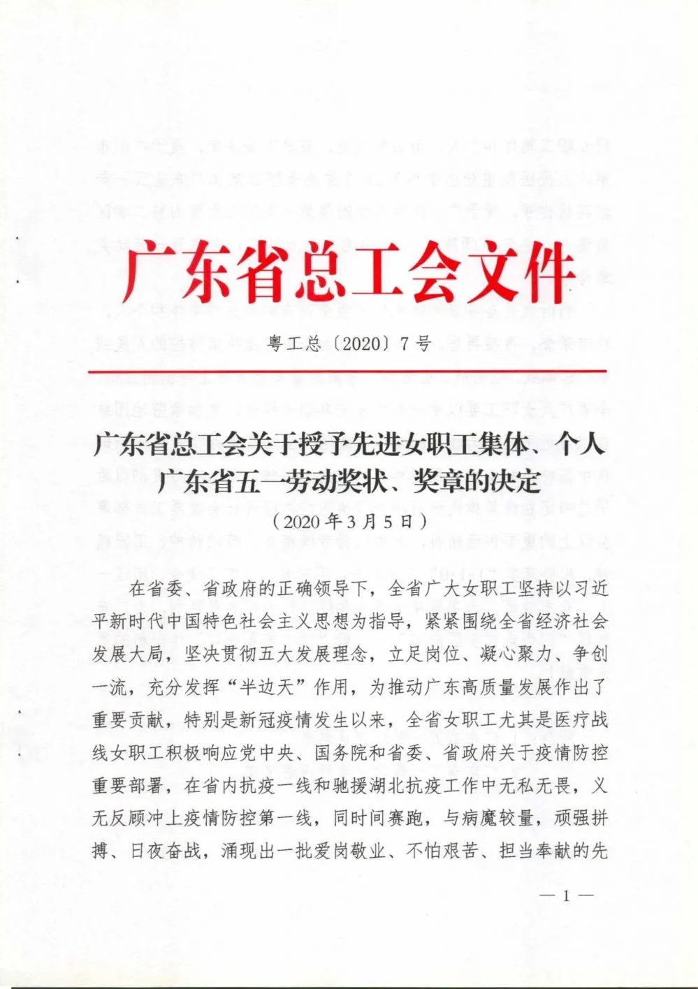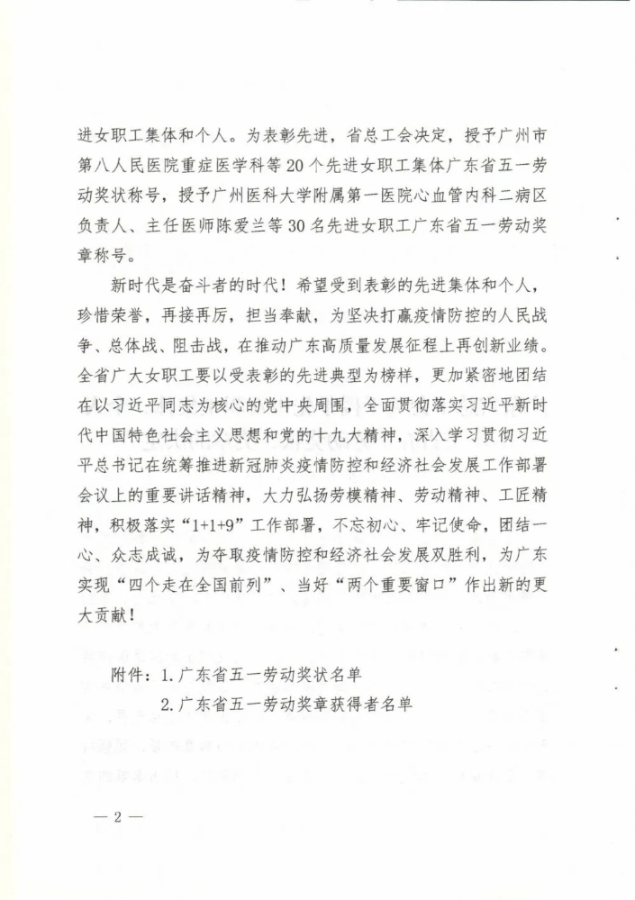 全面貫徹習(xí)近平新時(shí)代中國(guó)特色社會(huì)主義思想和黨的十九大精神,大力弘揚(yáng)勞模精神、勞動(dòng)精神、工匠精神,特別是新冠疫情發(fā)生以來,全省醫(yī)療戰(zhàn)線上的女職工積極響應(yīng)黨中央、國(guó)務(wù)院和省委、省政府關(guān)于疫情防控重要布署,經(jīng)過不懈努力,我所朱慧蘭書記被省總工會(huì)授予“廣東省五一勞動(dòng)獎(jiǎng)?wù)隆睒s譽(yù)稱號(hào)!