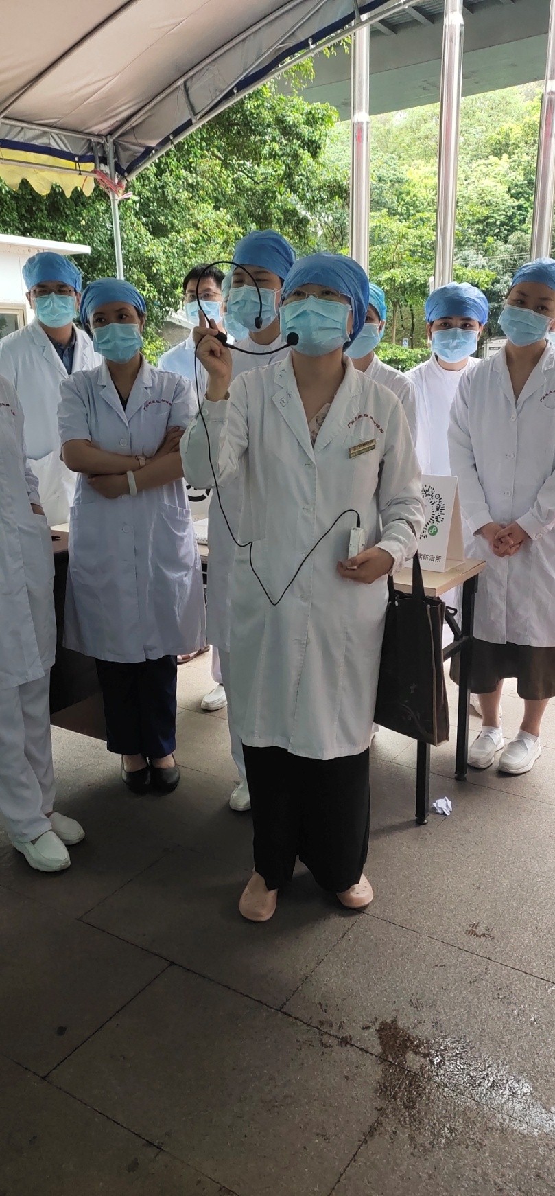 接下來的演練和培訓(xùn)中,黃茂芳科長分別就模擬各類患者、陪同家屬、黃碼等情形就診分檢的真實場景,對每個環(huán)節(jié)進(jìn)行了演練。