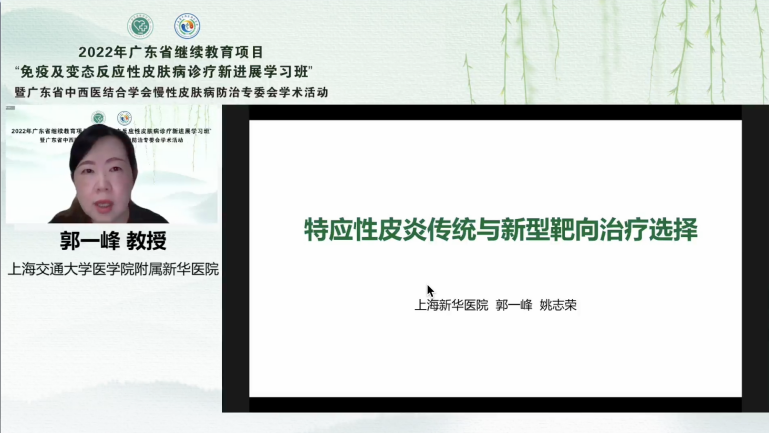 接下來的學術會議精彩紛呈。上海交通大學醫(yī)學院附屬新華醫(yī)院皮膚科中心副主任郭一峰教授為大家講授了《特應性皮炎傳統(tǒng)與新型靶向治療選擇》。特應性皮炎是一種發(fā)病率較高的慢性炎癥性疾病,困擾著廣大病友,其反復瘙癢、影響生活質量等特點使得特應性皮炎一直是皮膚科醫(yī)生工作上的難題和挑戰(zhàn)。郭教授通過解讀目前特應性皮炎的傳統(tǒng)及新型靶向治療方案,幫學員們鞏固了傳統(tǒng)的治療策略及規(guī)范,以及介紹了目前較為新穎的治療進展,為大家在治療特應性皮炎的方案上提供了更多的選擇。